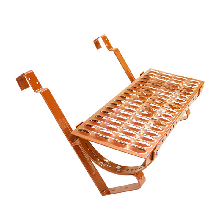 Die Befestigung und die Halter dienen einem optimalen Zusammenbau des Dachtritts. Jeder Halter besteht aus zwei Teilen. Den ersten davon montiert man an die Dachsparre mithilfe spezieller Holzschrauben. Mit dem zweiten Teil befestigt man das Podest auf der Dachfläche. Dadurch kann man sich auf dem Dach anstrengunsfrei bewegen. Falls Sie aus irgendeinem Grund einige Stufen im Laufrost ersetzen möchten, so können Sie den Halter problemlos abschrauben lassen.